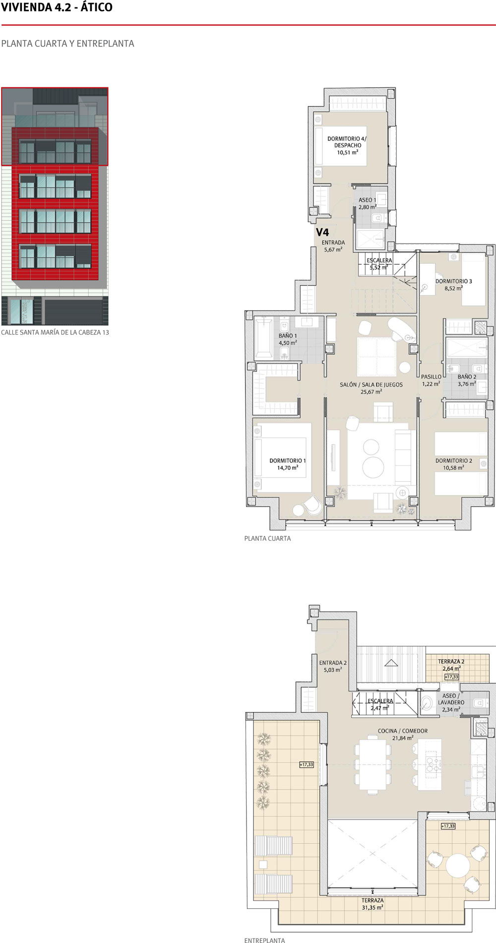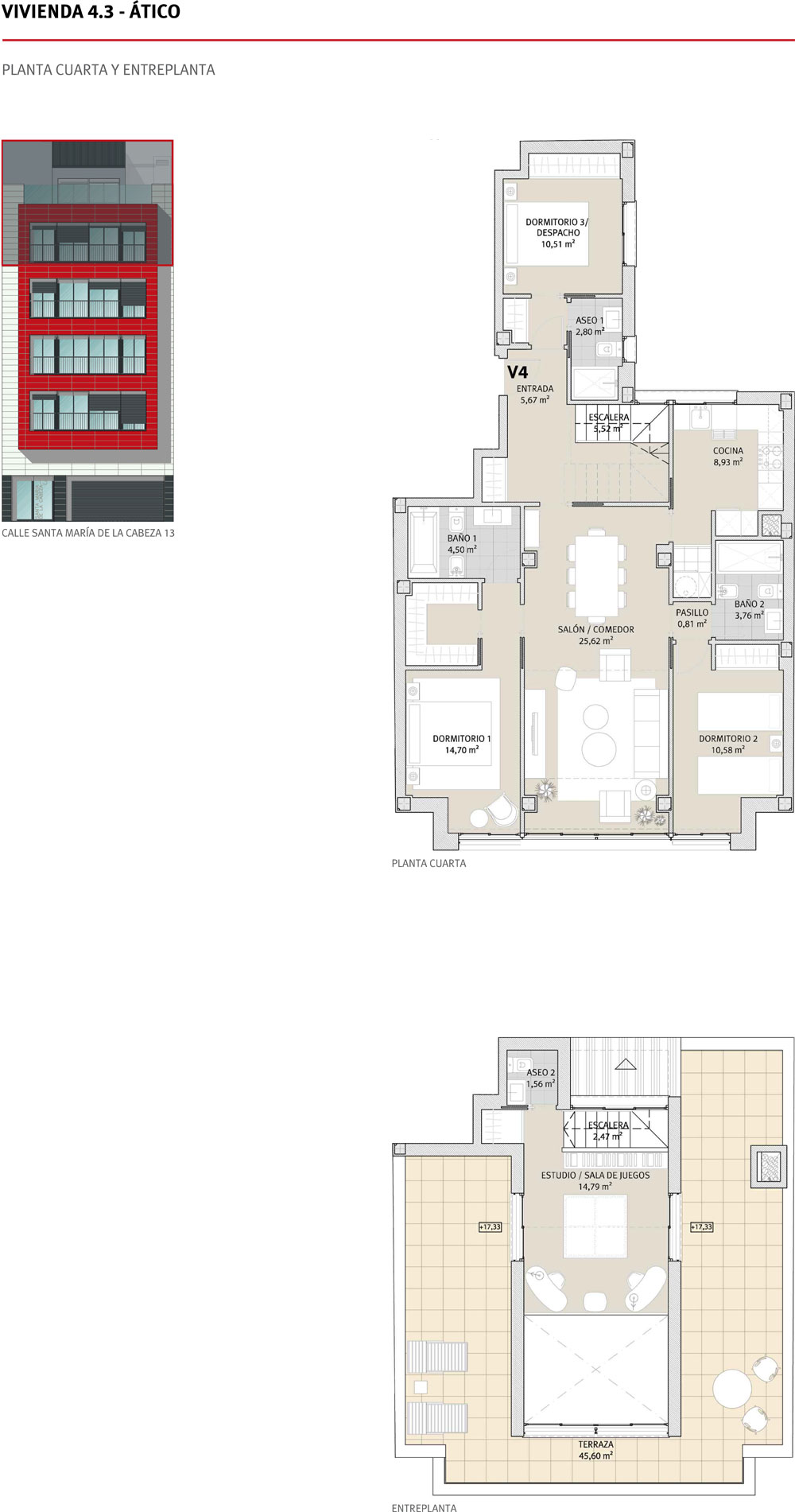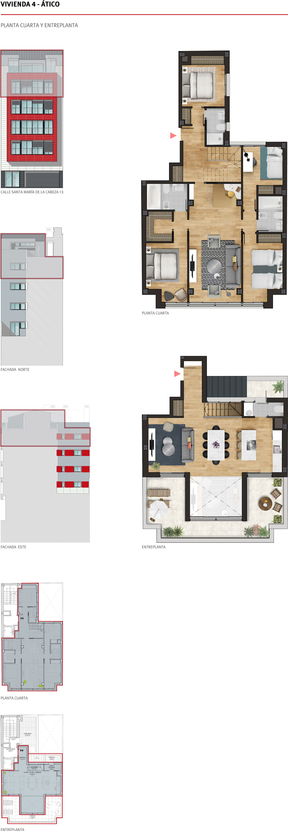 | V4.3 Ático+Trastero 4+Plaza de garaje | Cuarta y ático | Exterior/Interior | 3 | 139,04 | 167,36 | 208,59 | 493.000,00 € |  |